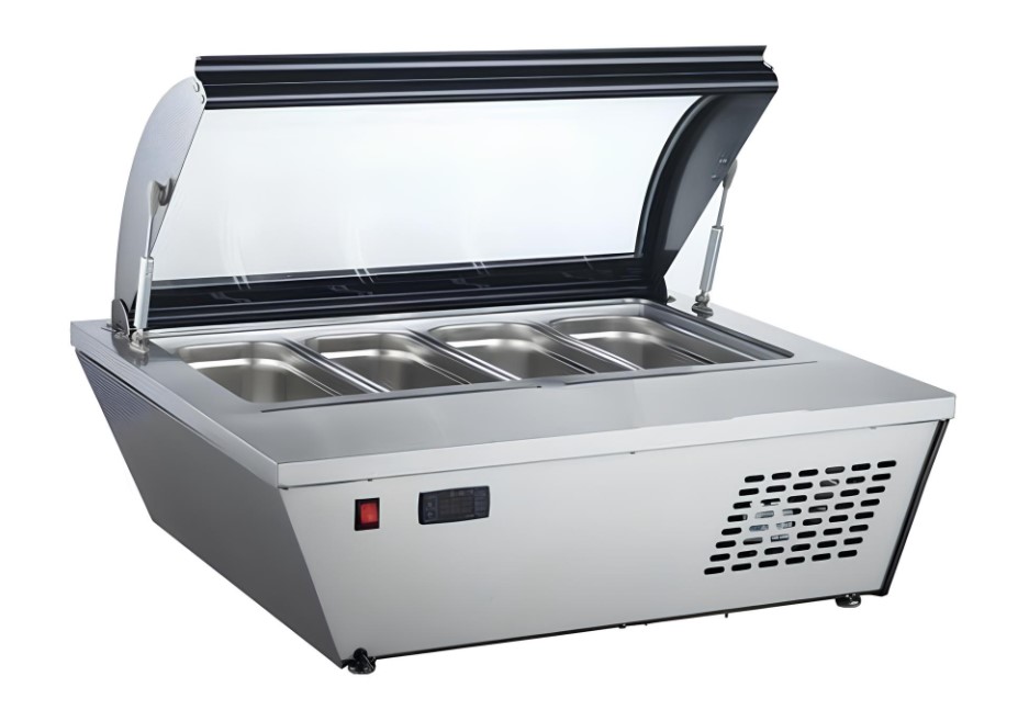 Витрина для мороженого Hurakan HKN-ICS67 — компактная настольная модель с изогнутой стеклянной дверцей и вместимостью 4 гастроемкостей по 5 литров. Отличается стабильным температурным диапазоном до -25 °C, автоматической оттайкой и использованием экологичного хладагента R600a. Боковое расположение агрегата обеспечивает рациональное использование внутреннего пространства и удобство обслуживания.