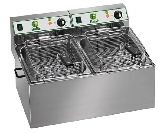Фритюрница Fimar FT 4+4 – профессиональное оборудование для быстрого и равномерного обжаривания продуктов в небольших и средних кухнях. Две ванны по 4 литра каждая позволяют одновременно готовить разные блюда или работать с большим объёмом порций. Общий объём масла в 6 литров обеспечивает стабильный температурный режим на протяжении всего процесса. Температура регулируется от 50 до 180 °C, что позволяет точно контролировать процесс приготовления и добиваться оптимальной корочки на продуктах.