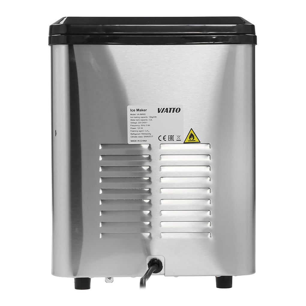 Льдогенератор Viatto VA-IM99D относится к заливному типу. Использование воды из бутыли или резервуара, а также компактные размеры позволяют устанавливать льдогенератор в местах, где нет доступа к водопроводу. Он обеспечивает постоянный запас пальчикового льда для приготовления различных напитков, от простых соков до коктейлей. Прозрачные цилиндрические гранулы медленнее тают, чем стандартные кубики, что помогает сохранить вкус и температуру напитков, а также эффектно выглядят в бокалах. Колотый лед используется в сервировке блюд.