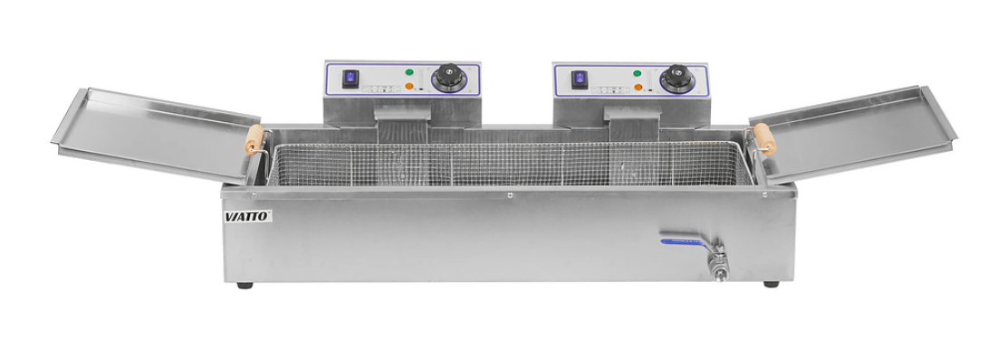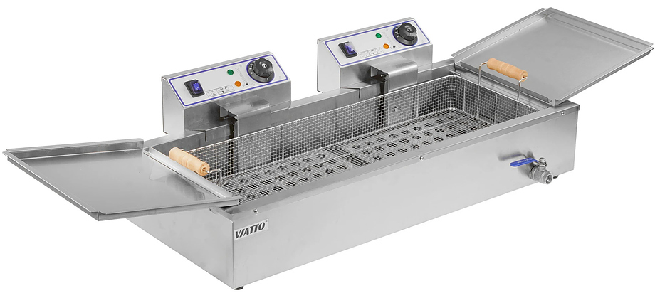 Чебуречница Viatto EF-26L-TS – модель, ориентированная на потоковое приготовление изделий во фритюре, где важны не только объём, но и удобство работы в течение всей смены. Вместительная ванна на 26 литров позволяет загружать крупные партии, а диапазон температур от 50 до 190 °C даёт возможность адаптировать процесс под разные рецептуры и степень обжарки.