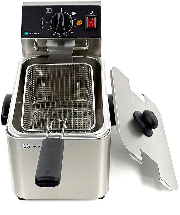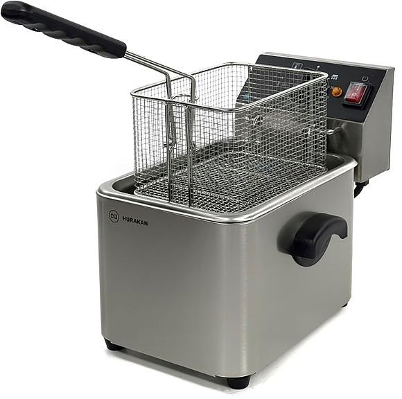 Фритюрница Hurakan HKN-FT4N – компактная модель для точечной работы, где важна аккуратность и контроль процесса. Объём ванны 4 литра позволяет готовить небольшие партии без перерасхода масла, а рабочий диапазон от 1,5 до 4 литров удобно подстраивается под текущую загрузку. Температура регулируется в пределах от 60 до 190 °С, что подходит как для разогрева, так и для полноценной жарки.