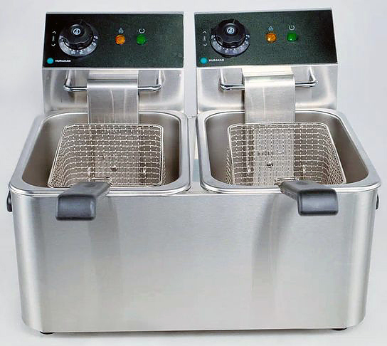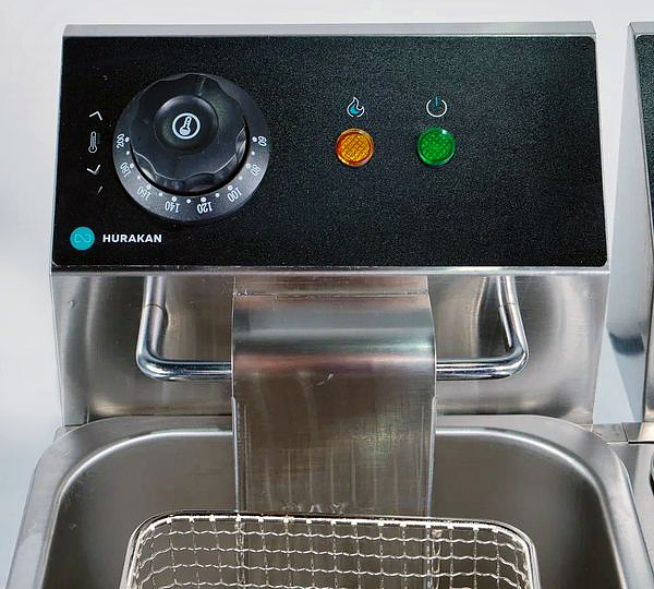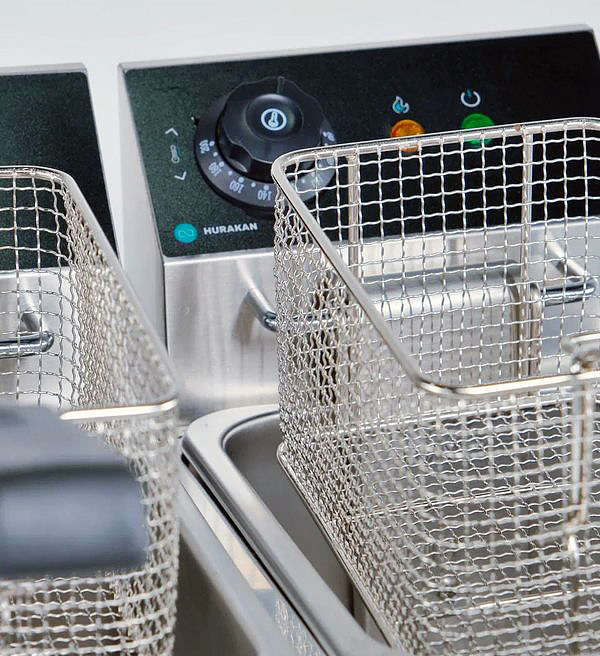 Фритюрница Hurakan HKN-FD44N подойдёт для кухонь с умеренной загрузкой, где важно быстро готовить разные блюда без пересечения вкусов. Две отдельные ванны объёмом по 4 литра позволяют одновременно работать с разными продуктами, а температурный диапазон от 60 до 200 °С даёт возможность точно подбирать режим под конкретные задачи.