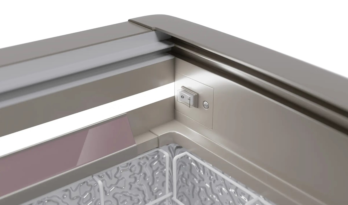 Оборудование подходит для хранения, демонстрации и заморозки продуктов, полуфабрикатов и мороженого в торговых залах. Светодиодная подсветка делает продукцию более заметной, а система автоматической разморозки с использованием горячего газа снижает необходимость регулярного обслуживания. Удобная литая ручка без крепежных элементов, двойной кабель питания и продуманная система защиты повышают комфорт и безопасность при эксплуатации.