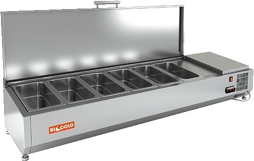 Холодильная витрина HICOLD VRTU 1485 (1/4) является удобным и функциональным решением для профессиональных кухонь, обеспечивая быстрый доступ к охлаждённым ингредиентам и поддержание санитарных стандартов. Оснащена встроенным холодильным агрегатом и использует статическую систему охлаждения, обеспечивающую стабильное поддержание заданной температуры по всему объёму камеры.