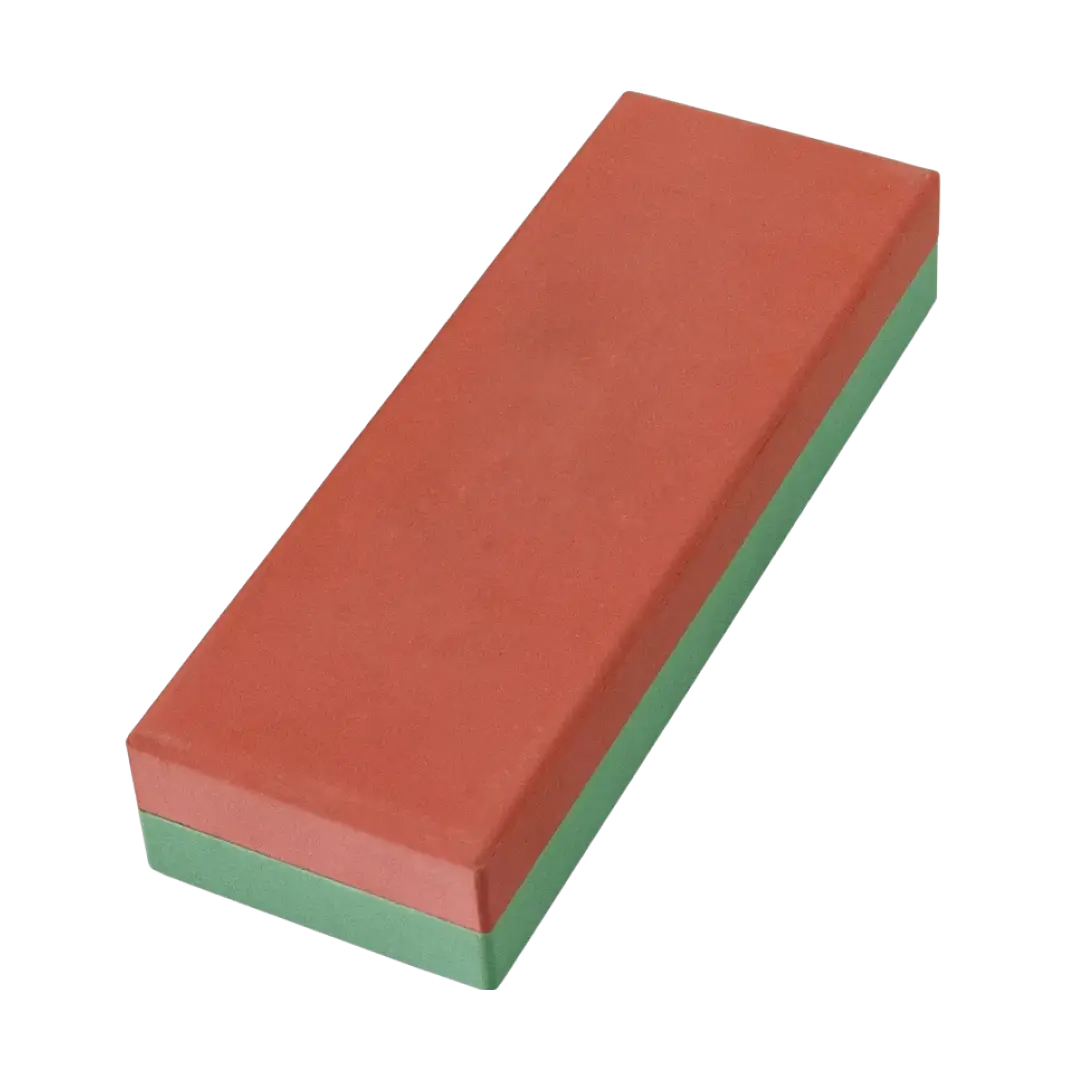 Точильный камень имеет две разные зернистости, что обеспечивает полный цикл заточки: