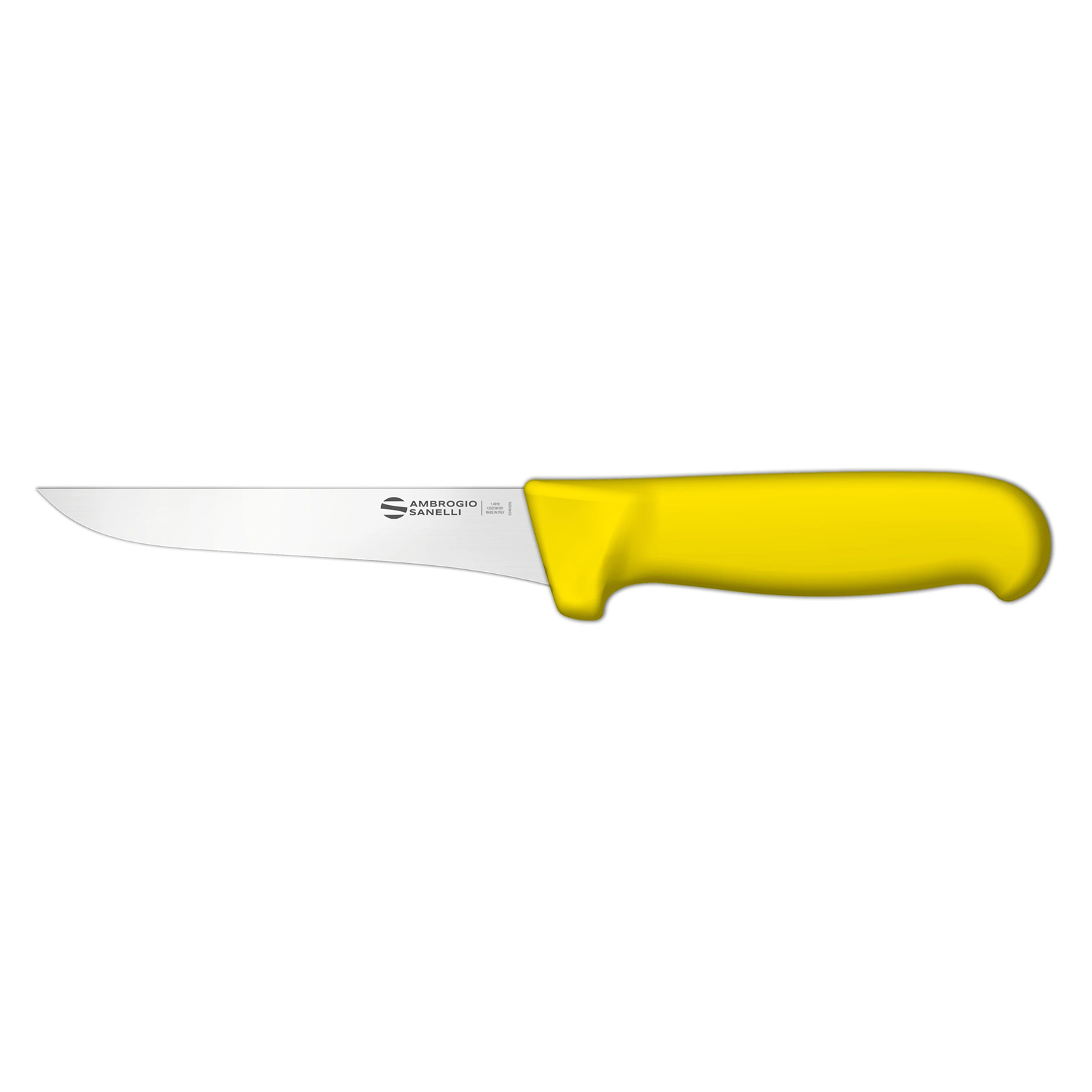 Обвалочный нож Sanelli SD07014Y серии Supra Colore с узким прямым лезвием длиной 14 см – это профессиональный инструмент, разработанный для точной и быстрой работы с мясом и птицей в условиях интенсивной эксплуатации. Нож универсален, что делает его незаменимым помощником при приготовлении различных блюд.