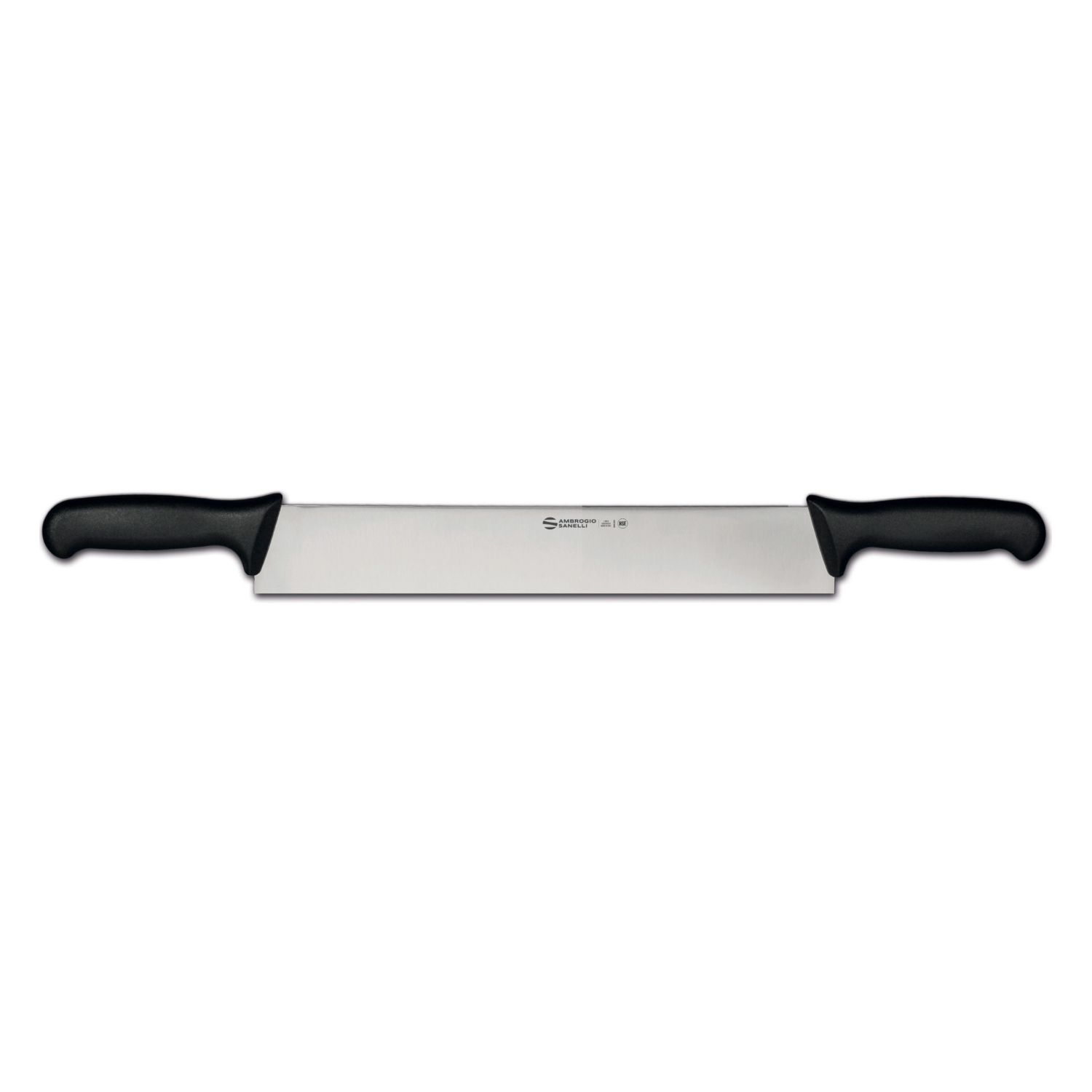 Профессиональный нож для сыра Sanelli SW44036B серии Supra с длиной лезвия 36 см разработан для быстрой и точной нарезки полутвердых и твердых сыров, обеспечивая чистый и ровный рез даже через плотные головки. Благодаря своей конструкции с двумя симметричными рукоятками, нож позволяет распределять нагрузку на обе руки.