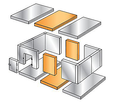 - Панели имеют различную толщину стального листа: 0,5 мм для стен и потолка и 1,2 мм для пола.