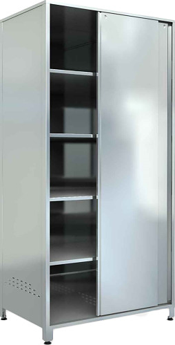 Конструкция шкафа выполнена из прочной нержавеющей стали, устойчивой к воздействию влаги, температурных перепадов и интенсивной эксплуатации. Продуманное внутреннее пространство с полками позволяет рационально распределить содержимое и быстро находить нужные предметы. Дверцы закрытого типа надежно защищают инвентарь от пыли и внешних загрязнений, сохраняя его в чистоте.
