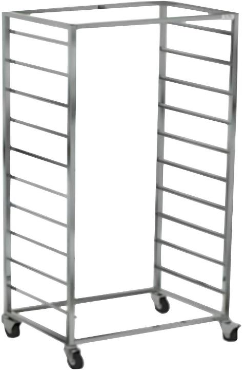 Каркас тележки изготовлен из прочных материалов, устойчивых к коррозии и частым нагрузкам. Конструкция включает 12 пар направляющих, которые позволяют размещать подносы на разных уровнях, равномерно распределяя вес и предотвращая деформацию. Благодаря оптимальным габаритам шпилька легко маневрирует даже в ограниченном пространстве, что особенно важно в производственных кухнях и пекарнях.