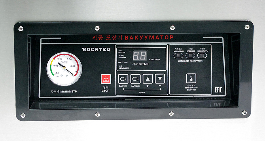 Камера выполнена из прочных материалов, устойчивых к нагрузкам и воздействию влаги. Две сварочные планки обеспечивают надежное и ровное запаивание упаковки, ускоряя рабочий процесс. Управление интуитивно понятное и простое.
