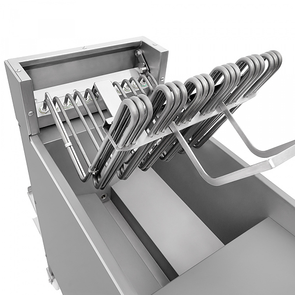 Ручной механизм подъёма ТЭНов упрощает обслуживание, а мощные нагреватели быстро восстанавливают температуру после загрузки.