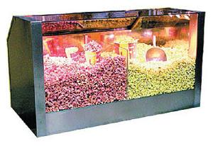 Модель оснащена регулируемым подогревом в диапазоне от +30 до +85 °C, а встроенная подсветка подчёркивает внешний вид продукции, делая её более привлекательной для покупателей. Задняя дверца обеспечивает оператору быстрый и удобный доступ к попкорну. Корпус выполнен из нержавеющей стали, устойчива к интенсивной эксплуатации.