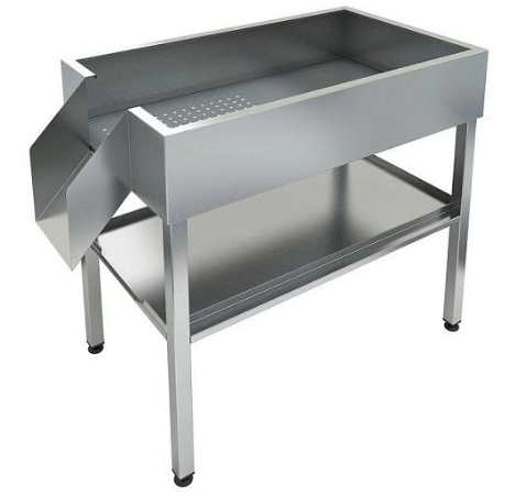 Стол для карамелизатора RoboLabs СКрм-100/6 с диаметр отверстий в 10 мм разработан для устойчивой установки карамелизаторов и комфортной работы оператора. Рабочая поверхность наполовину выполнена с равномерной перфорацией со стороны лотка.. Усиленная конструкция сохраняет жесткость даже при постоянной нагрузке, а нижняя полка позволяет разместить инвентарь и расходные материалы в зоне быстрого доступа.