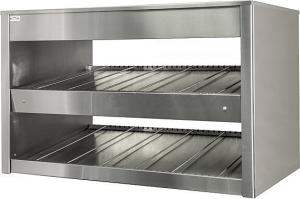 Полки оснащены отдельными терморегуляторами, что позволяет выставлять индивидуальный температурный режим в диапазоне от +30 до +90 °C. Благодаря использованию стеклокерамических нагревателей и нагревательного кабеля тепло распределяется равномерно по всей поверхности. Конструкция выполнена из нержавеющей стали, дополнена подсветкой и направляющими, разделяющими полки на зоны разной ширины для удобной выкладки.