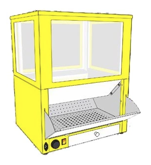 Корпус, окрашенный в яркий жёлтый цвет, делает оборудование заметным элементом торговой зоны. Светодиодная подсветка по периметру стекла подчёркивает аппетитный вид попкорна. Внутренний обогрев нижней части предотвращает пересушивание продукта, сохраняя его хрустящим и ароматным.