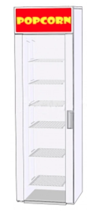 Конструкция витрины предусматривает 6 регулируемых по высоте полок и две группы дверей: стеклянные распашные спереди для покупателей и глухие сзади — для удобной загрузки персоналом. Верхний лайтбокс со съёмным изображением позволяет оформить витрину под стиль заведения или рекламную акцию.