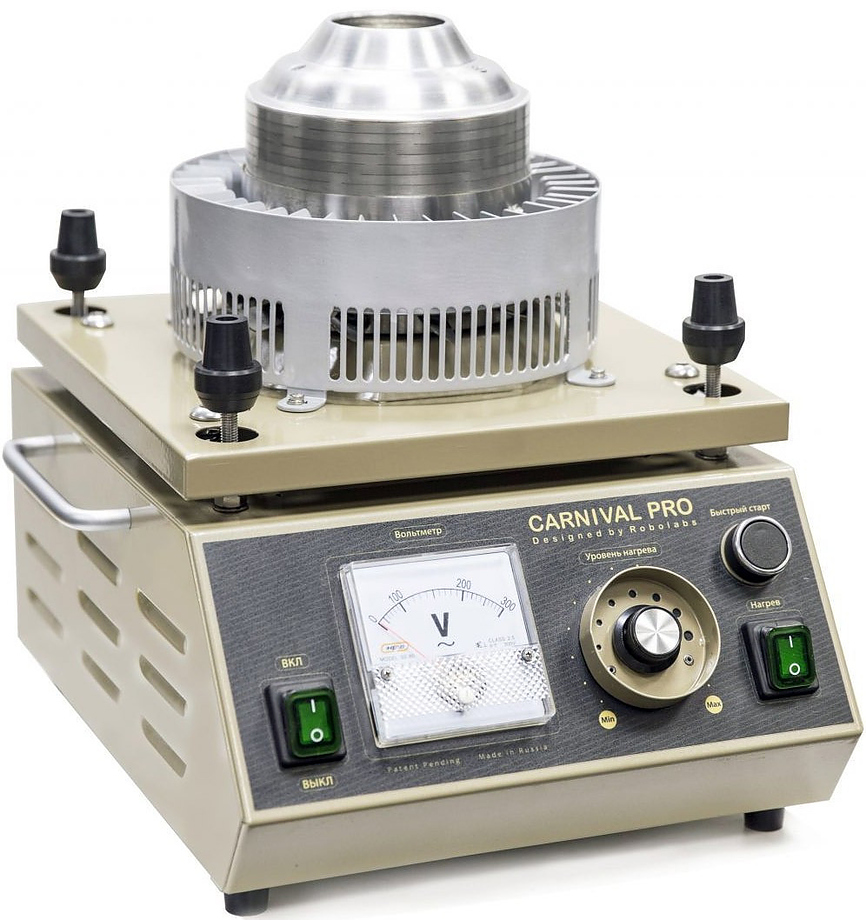 Модель оснащена ТЭН-нагревом, регулятором точной настройки мощности и стрелочным вольтметром для контроля нагрева. Для надёжности предусмотрена защита регулятора, пружинная подвеска двигателя, исключающая вибрацию корпуса, и окно для обслуживания щёточного узла.