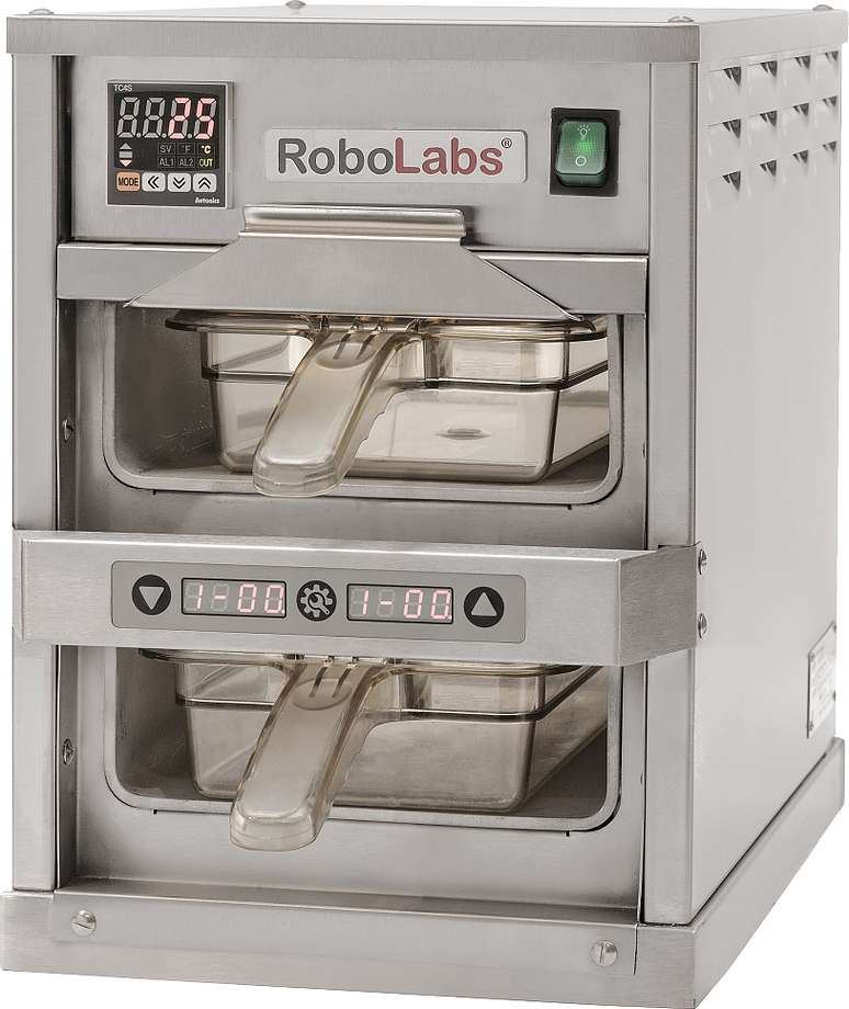 Мультихолдер RoboLabs МН-2-1М-T1 создан для аккуратного хранения и подогрева готовых блюд в гастроёмкостях. Каждая из 2-х ячеек оснащена собственной электронной регулировкой температуры и индивидуальным таймером. Это даёт возможность работать с разными блюдами одновременно, поддерживая для них оптимальные условия. Изолированная конструкция предотвращает смешивание запахов, а крышки сохраняют тепло и свежесть. Гастроёмкости GN 1/3 глубиной 65 мм не входят в комплект и подбираются отдельно.
