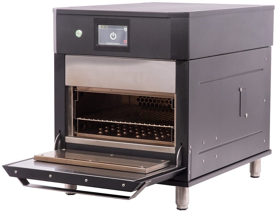 Импинджментная система создаёт мощный поток горячего воздуха, который воздействует на продукт сверху и снизу, ускоряя теплопередачу и сокращая время приготовления до 30 минут. Полностью разборная камера упрощает регулярное обслуживание и очистку. Корпус выполнен из окрашенной стали, что делает печь долговечной и удобной в эксплуатации.