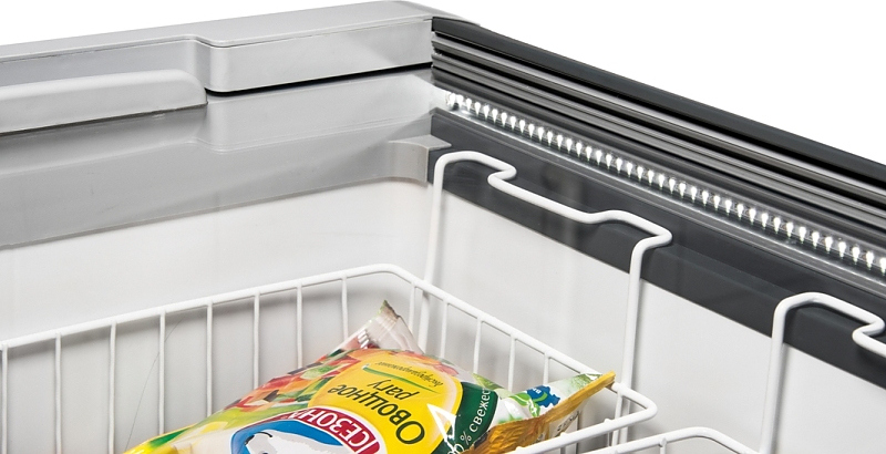 Прямые раздвижные стеклянные крышки обеспечивают удобный доступ к содержимому и хороший обзор продукции, что особенно важно для витринного формата.