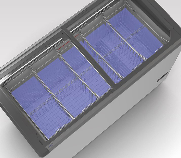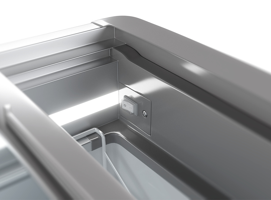 Ларь оснащен интеллектуальной системой контроля температуры, дренажной системой собственной разработки и необслуживаемым предконденсатором, что упрощает уход и снижает затраты на эксплуатацию.