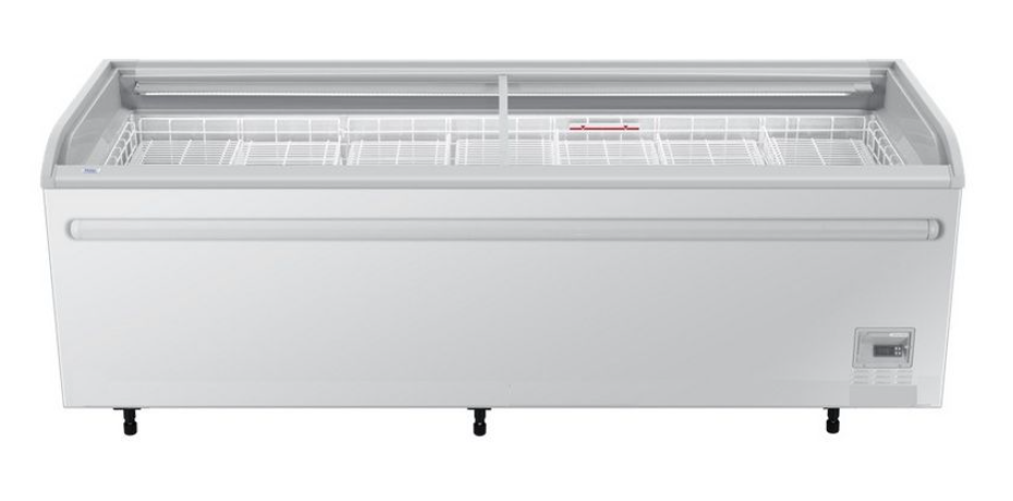 Конструкция предусматривает переключение между режимом морозильника и холодильника, что позволяет оптимизировать место на торговой площади. Система охлаждения работает на хладагенте R290 с автоматической оттайкой каждые 8 часов: конденсат стекает в ванночку компрессорного отсека и испаряется от его тепла. Предконденсатор без развитого оребрения исключает забивание пылью и упрощает техническое обслуживание.
