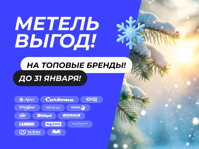 Встречаем зиму с обновлениями! С 1 декабря — снежный вихрь скидок на оборудование всех ведущих брендов. Готовьте свой ресторан к праздникам и наплыву гостей с максимальной выгодой.